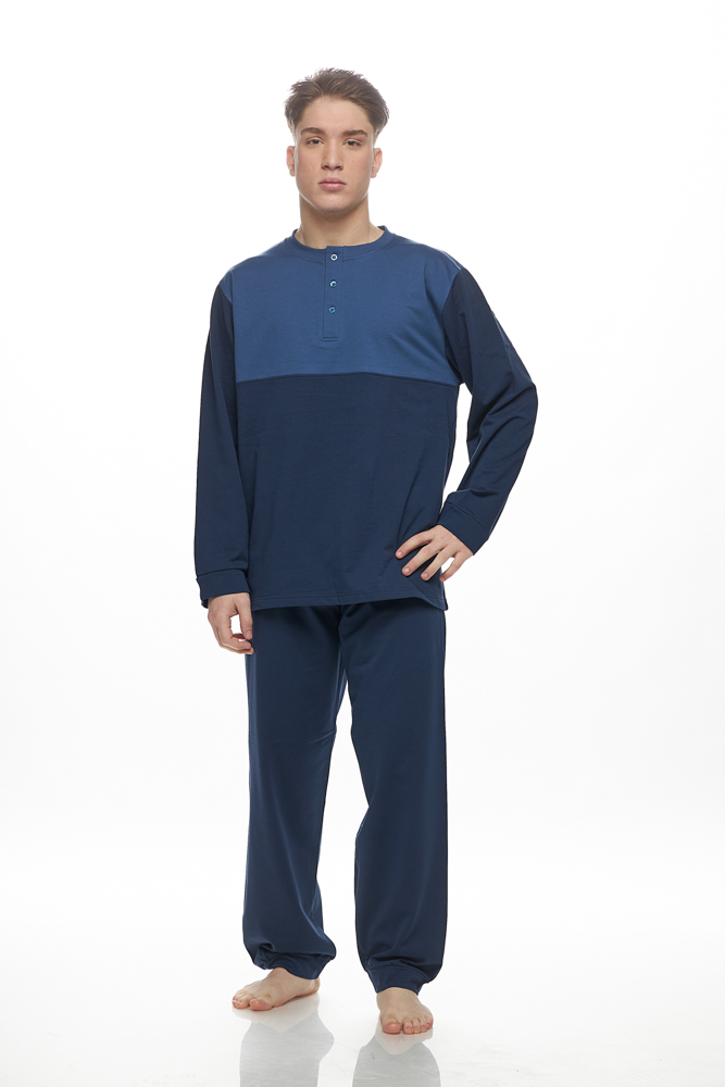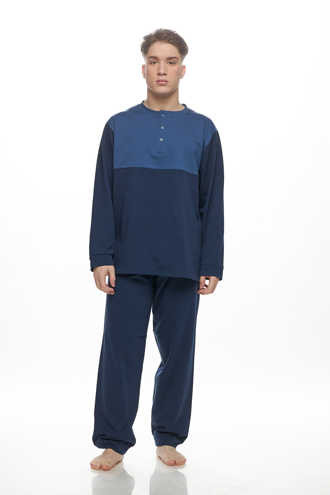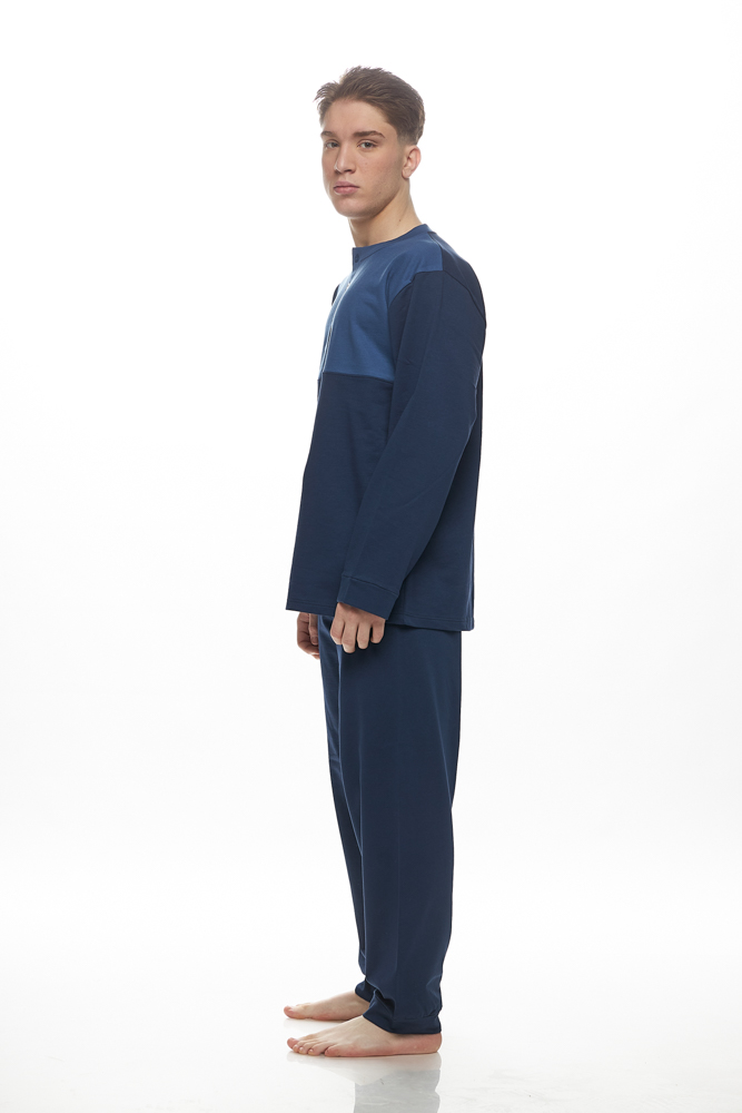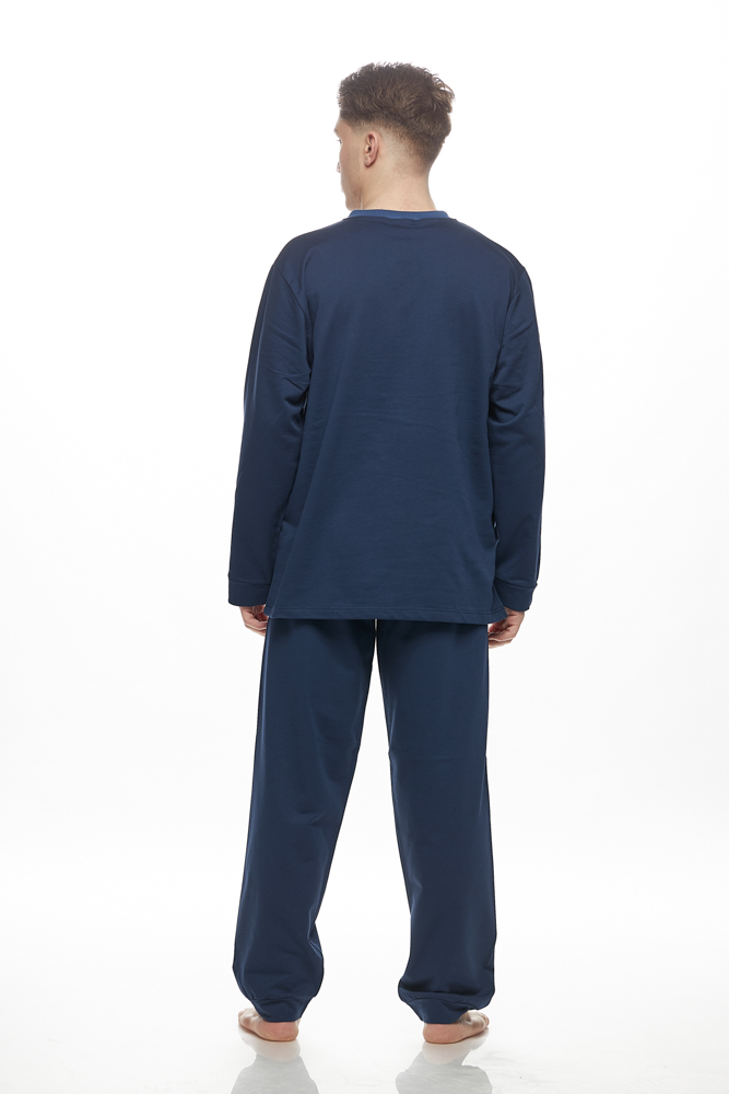 Ανδρική πιτζάμα από 100% βαμβάκι και λεπτό φούτερ εσωτερικά, που συνδυάζει άνεση και ζεστασιά.