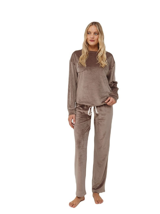 Φόρμες βελούδινες με γιακά χαμόγελο και στο κάτω μέρος της μπλούζας κορδέλα που σουρώνει, το παντελόνι είναι με μπάσκα στο κάτω μέρος, με επένδυση πολλή μαλακή fleece, που μπορούν να φορεθούν μέσα αλλά και έξω από το σπίτι.